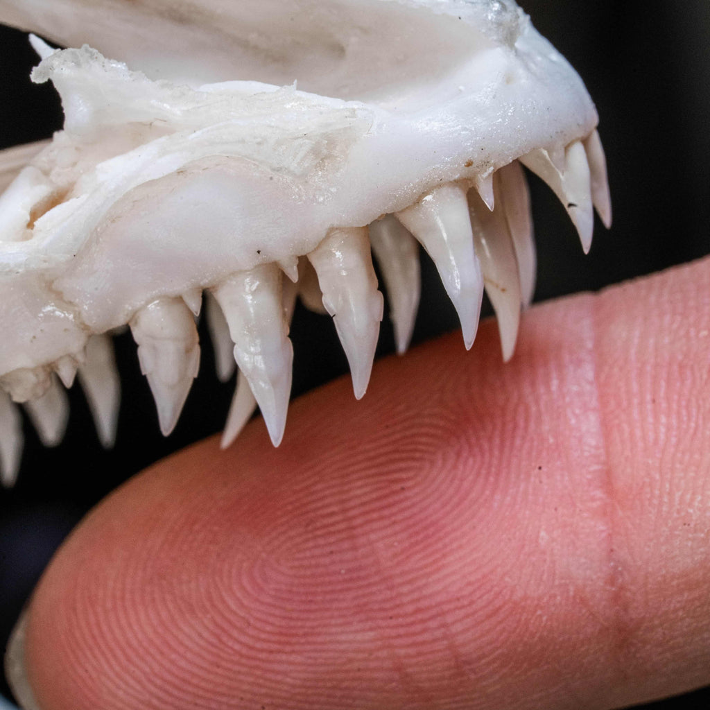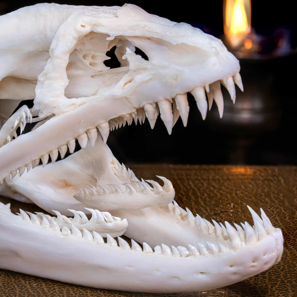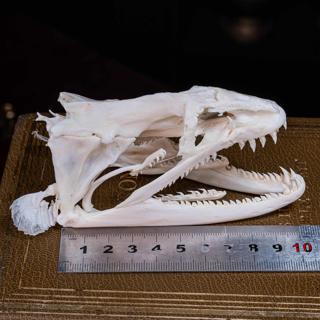 This Moray Eel skull gives a more detailed view of an expendable mouth full of sharp teeth, such a nightmare ambush grip and a second jaw to pull the victim down. Overall, this specimen is too good to pass on.
