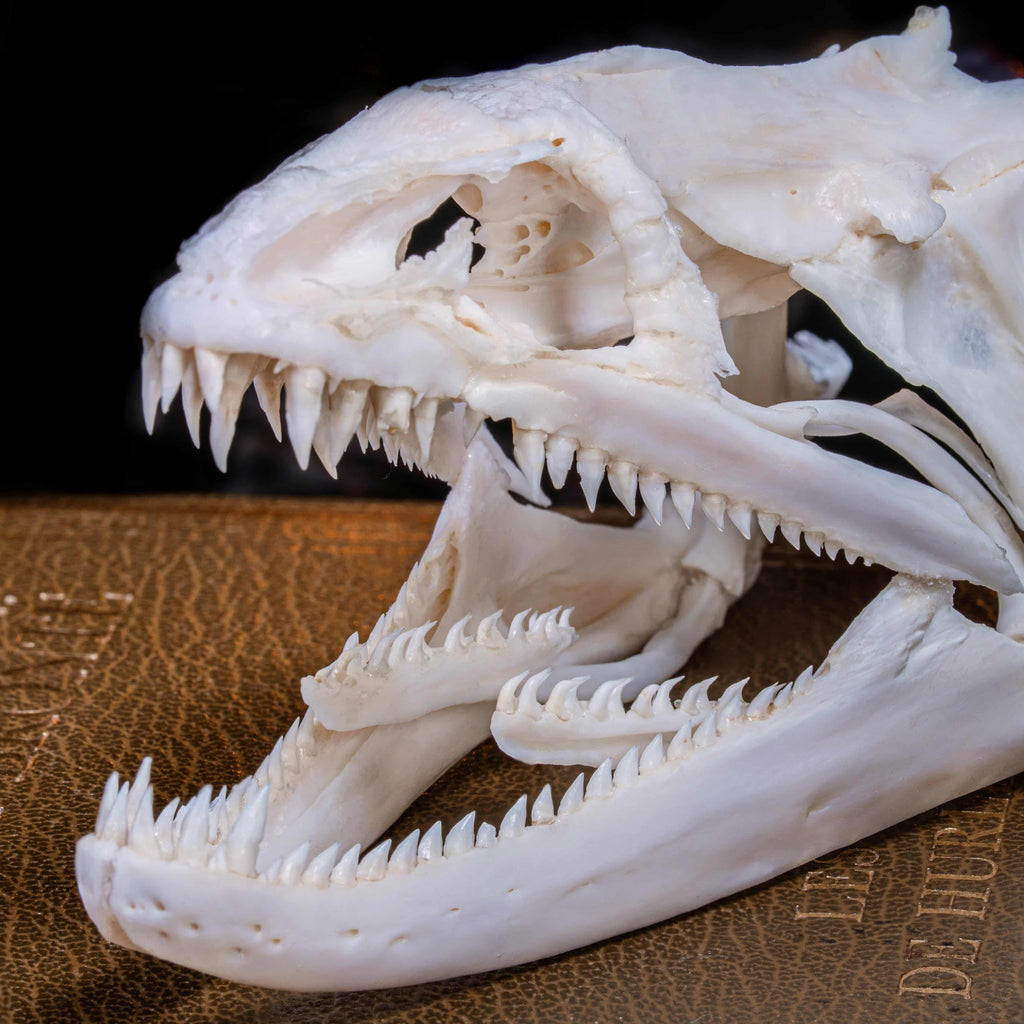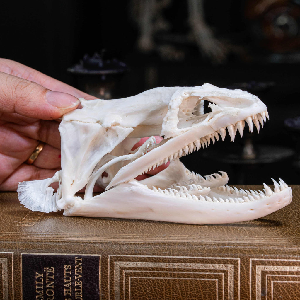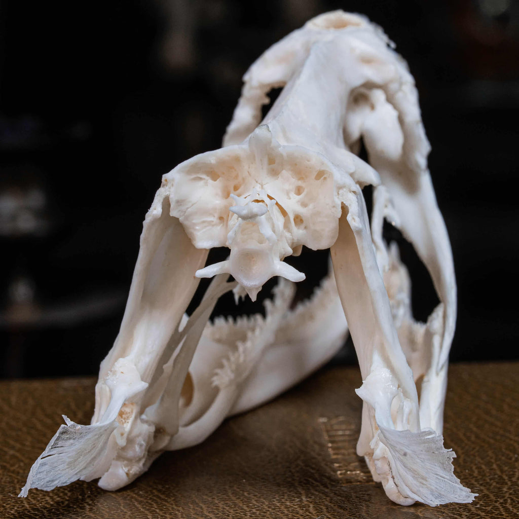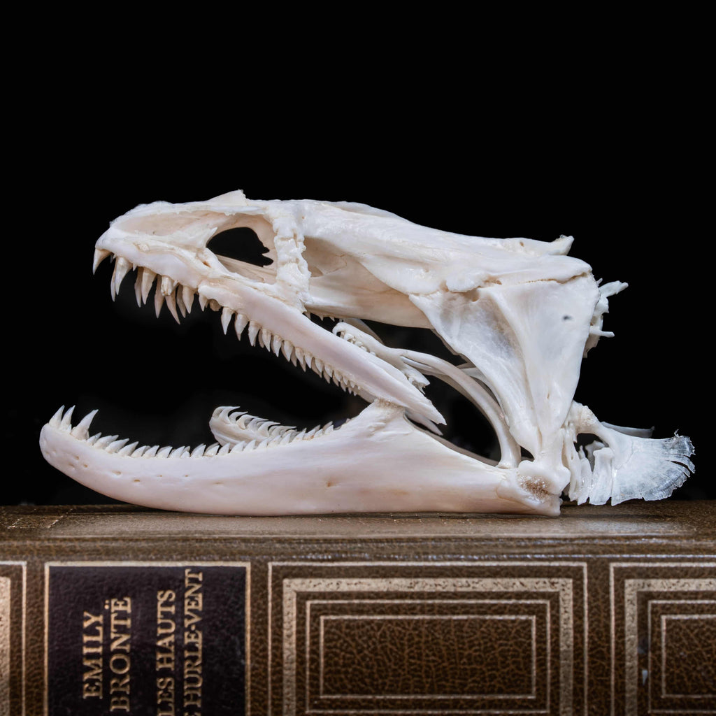 This Moray Eel skull gives a more detailed view of an expendable mouth full of sharp teeth, such a nightmare ambush grip and a second jaw to pull the victim down. Overall, this specimen is too good to pass on.