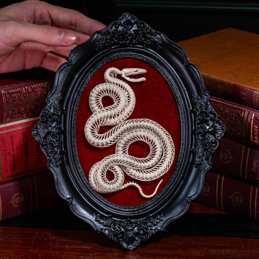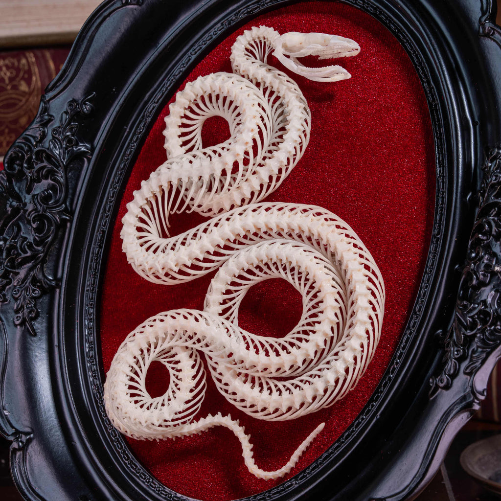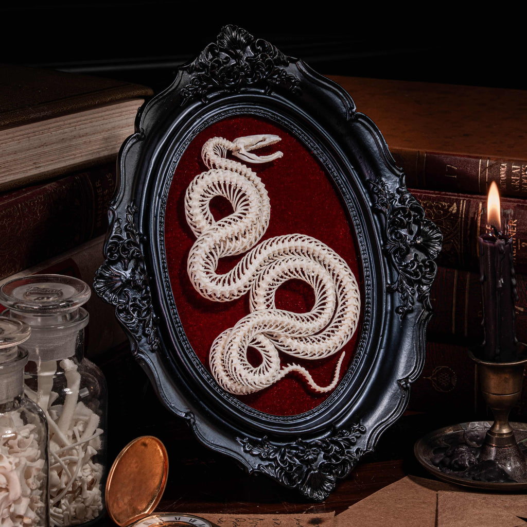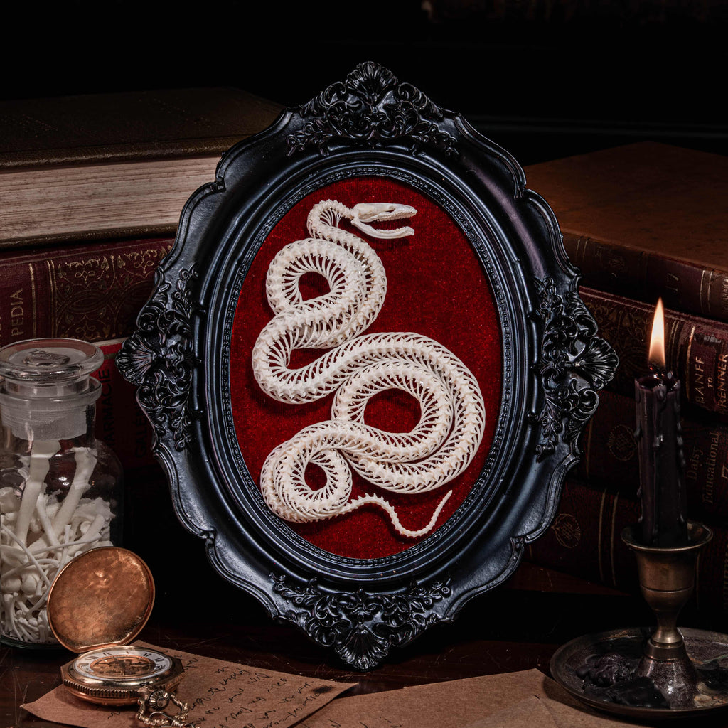 Real Snake Skeleton Gothic Black Frame with Red Velvet