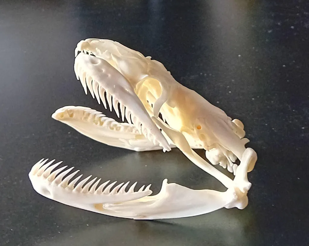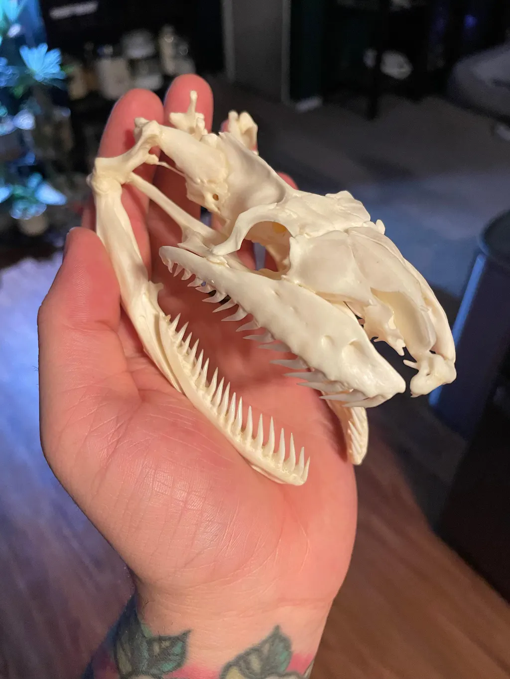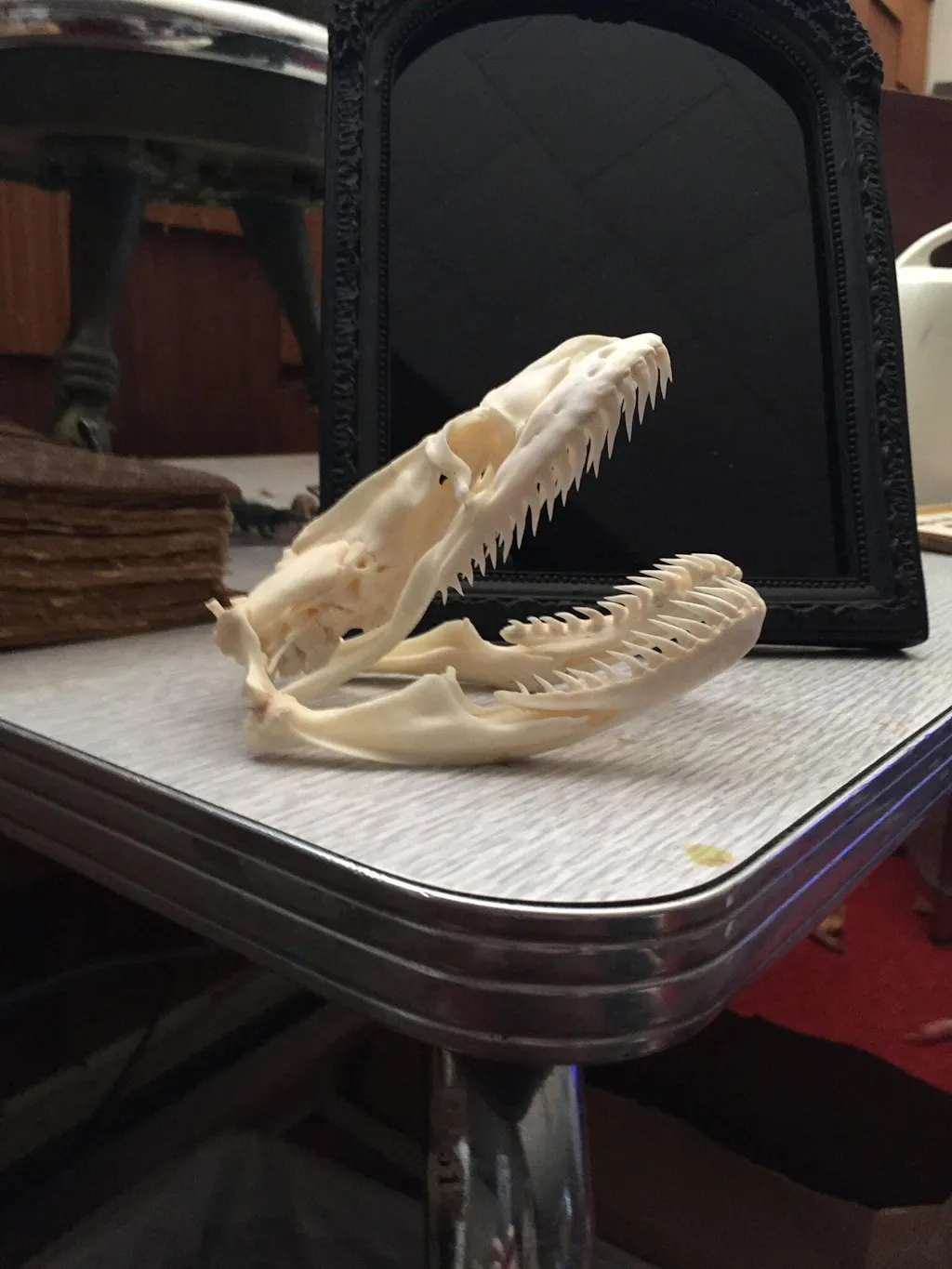 Halloween gift for oddities, bones and skeletons collector, real animal skull and skeleton, snake skeleton taxidermy, viper fangs skull and bone collectibles, museum anatomy specimen, Gothic decoration