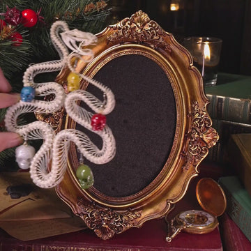 Snake skeleton Christmas Tree - Real Viper taxidermy with Skull Ball Ornaments on Gothic Frame